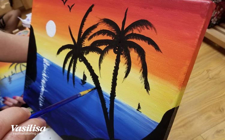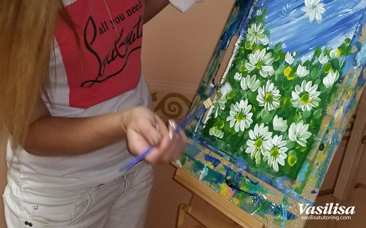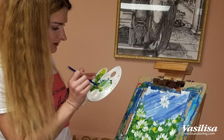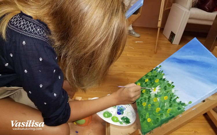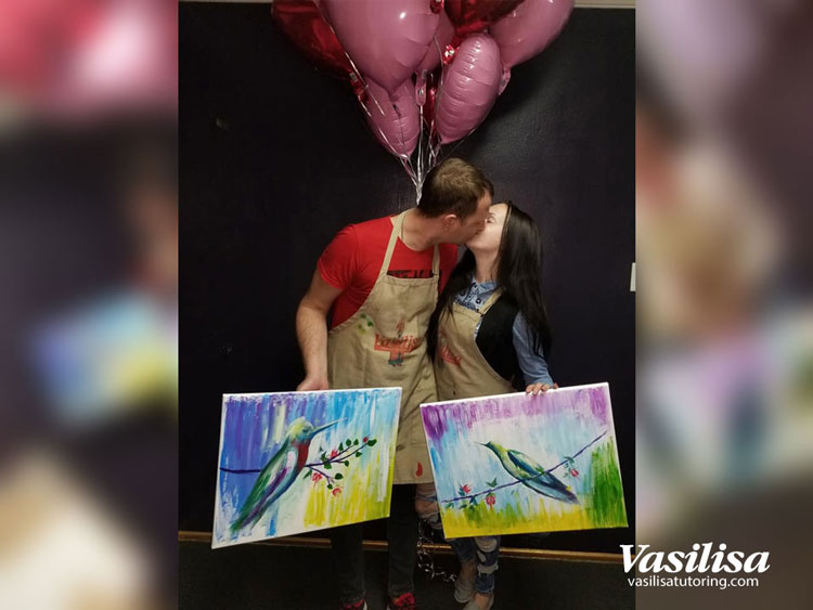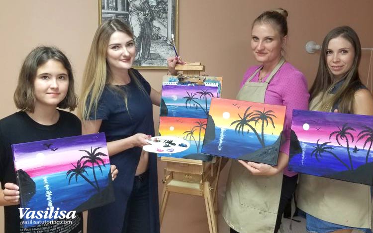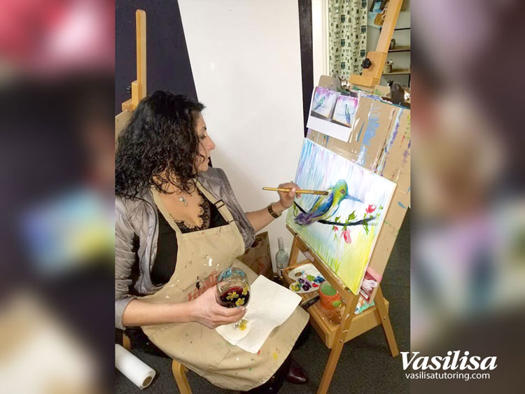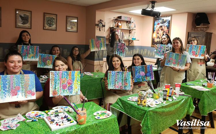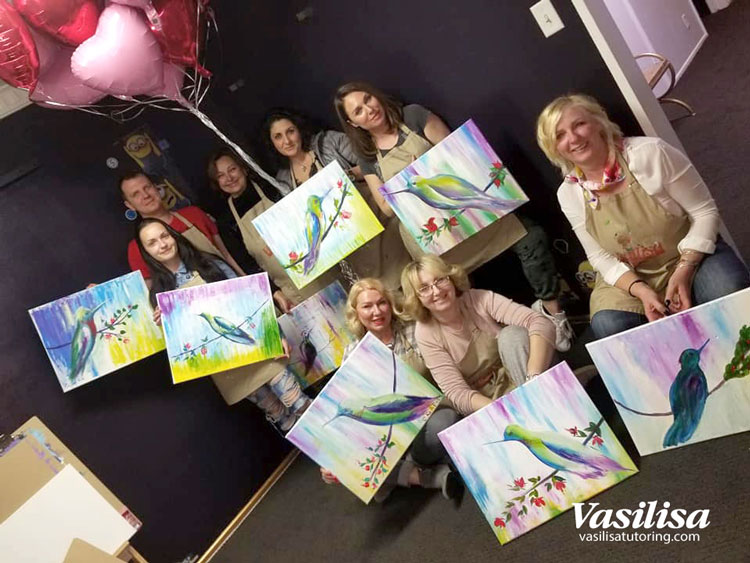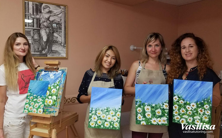 Wine tasting while painting has lately become a trendy and popular evening activity in L.A. And for a good reason. Just imagine yourself sitting relaxed and meditating about life with the glass of red Beaujolais or white Sauvignon Blanc, and at the same time painting something romantic. Quiet and pleasant music creates the atmosphere of serenity, and even if you have rarely painted before, you would definitely produce something original, maybe even mysterious. Who knows! But there is more to it! Your little one is also busy. He or she is learning Russian or Spanish in the next room, or plays chess and solves some difficult math problem while you are enjoying that glass of wine. We invite all mothers and fathers to participate in our wine-art tasting classes while your kids learn something in our center.