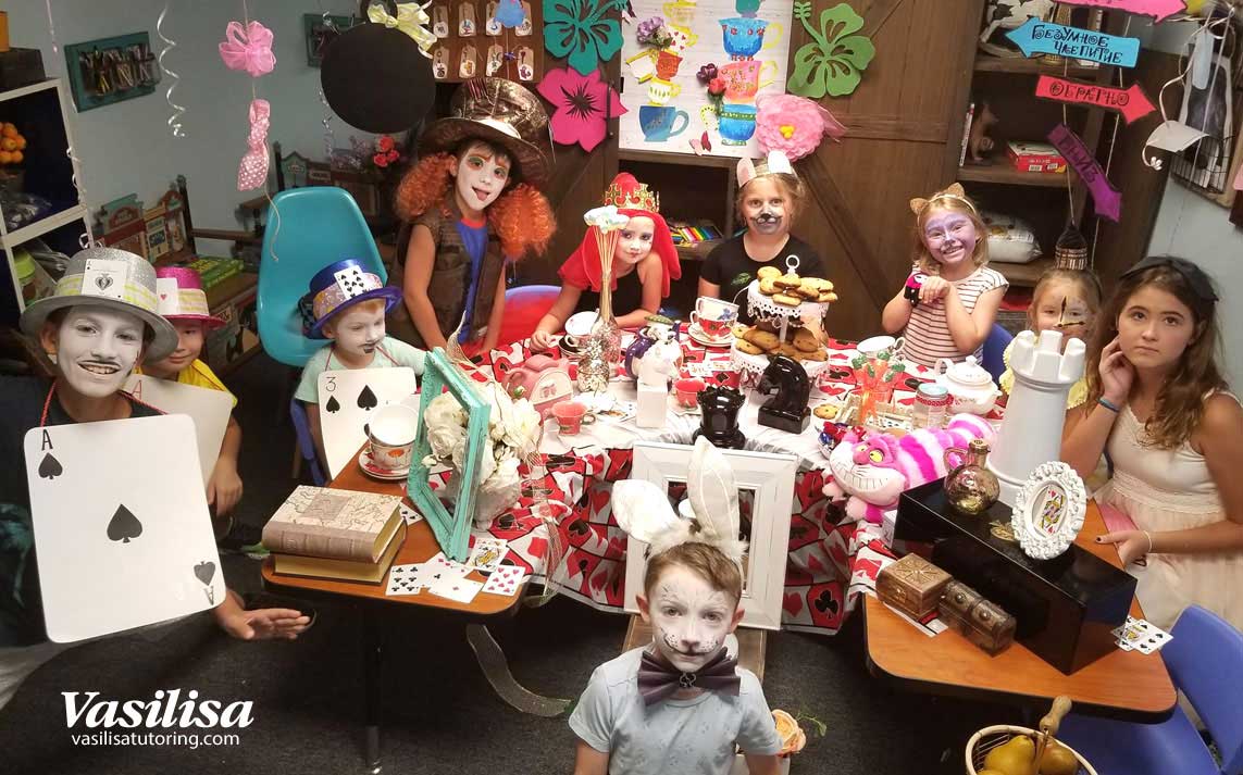 - Чайная вечеринка с Алисой и Шляпником. Face painting и костюмы для каждого ребенка. Уникальные авторские декорации для вашего праздника. Science-класс «Англия. Страна дождей и туманов». Продолжительность класса 2 часа 15 минут. Возраст детей от 5 лет. Дети младше 5 лет должны быть в сопровождении взрослых.